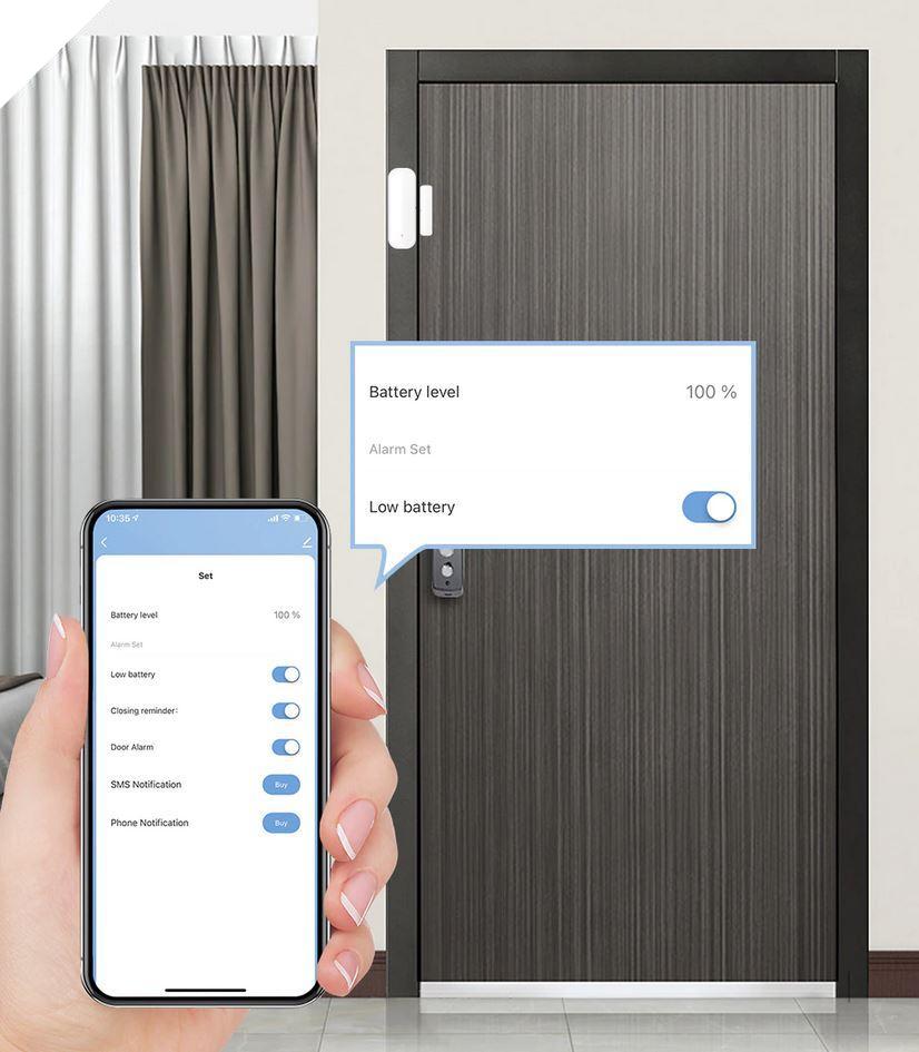 Cuando la puerta/ventana se abre o cierra, el dispositivo se activa y envía una notificación al smartphone.