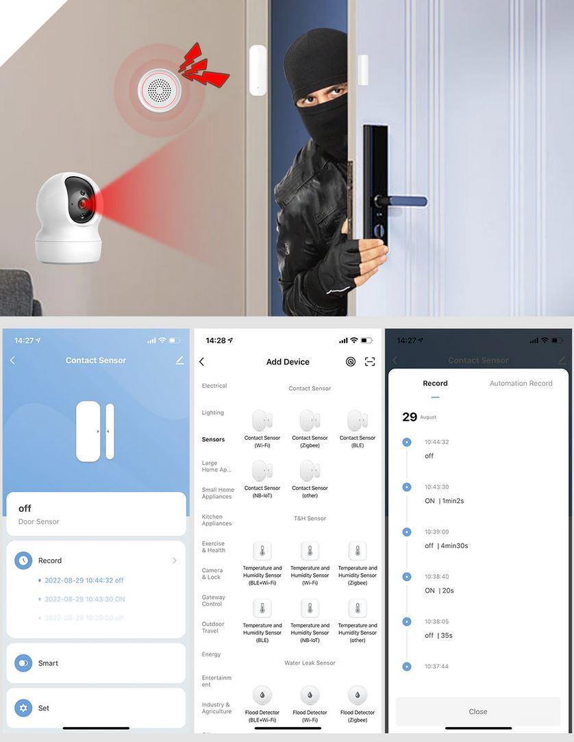 - Cuando se detecta la apertura del sensor, la cámara de seguridad IP empieza a grabar.